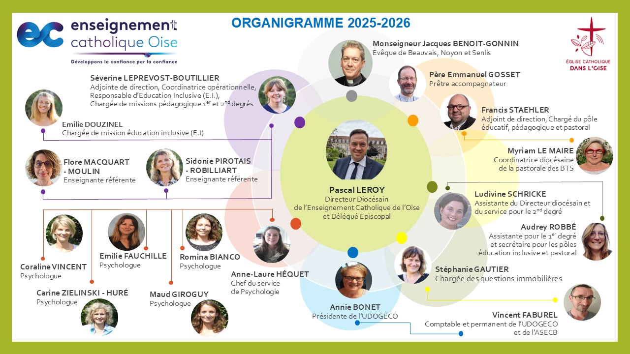 Organigramme 2025-2026 de l'équipe de l'Enseignement Catholique de l'Oise